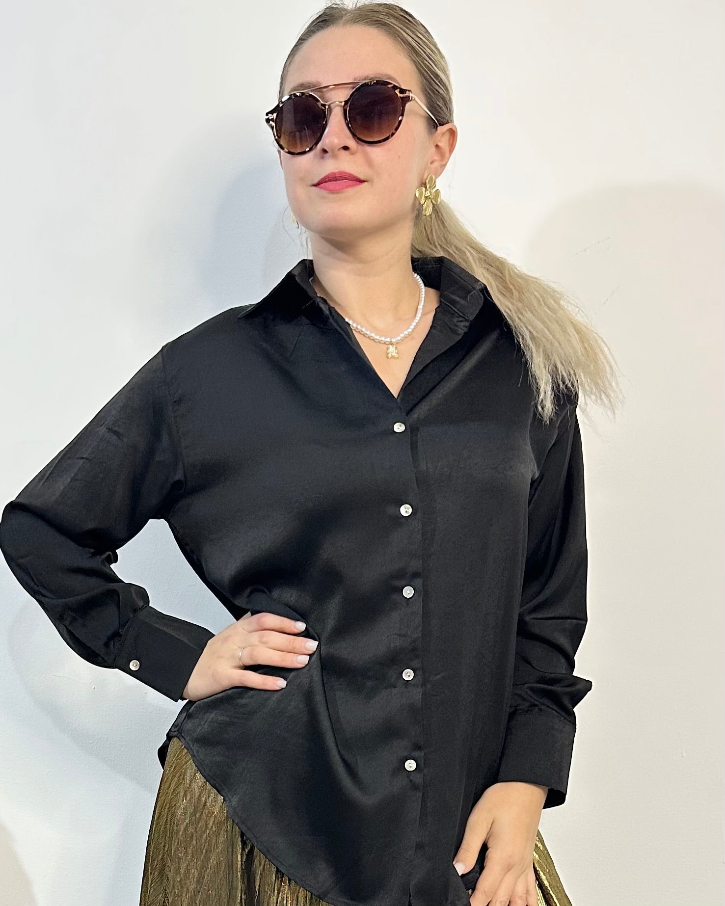 camicia tessuto lucido con abbottonatura nella parte centrale davanti. Taglia unica vestibilità da una taglia 40 ad una 46.