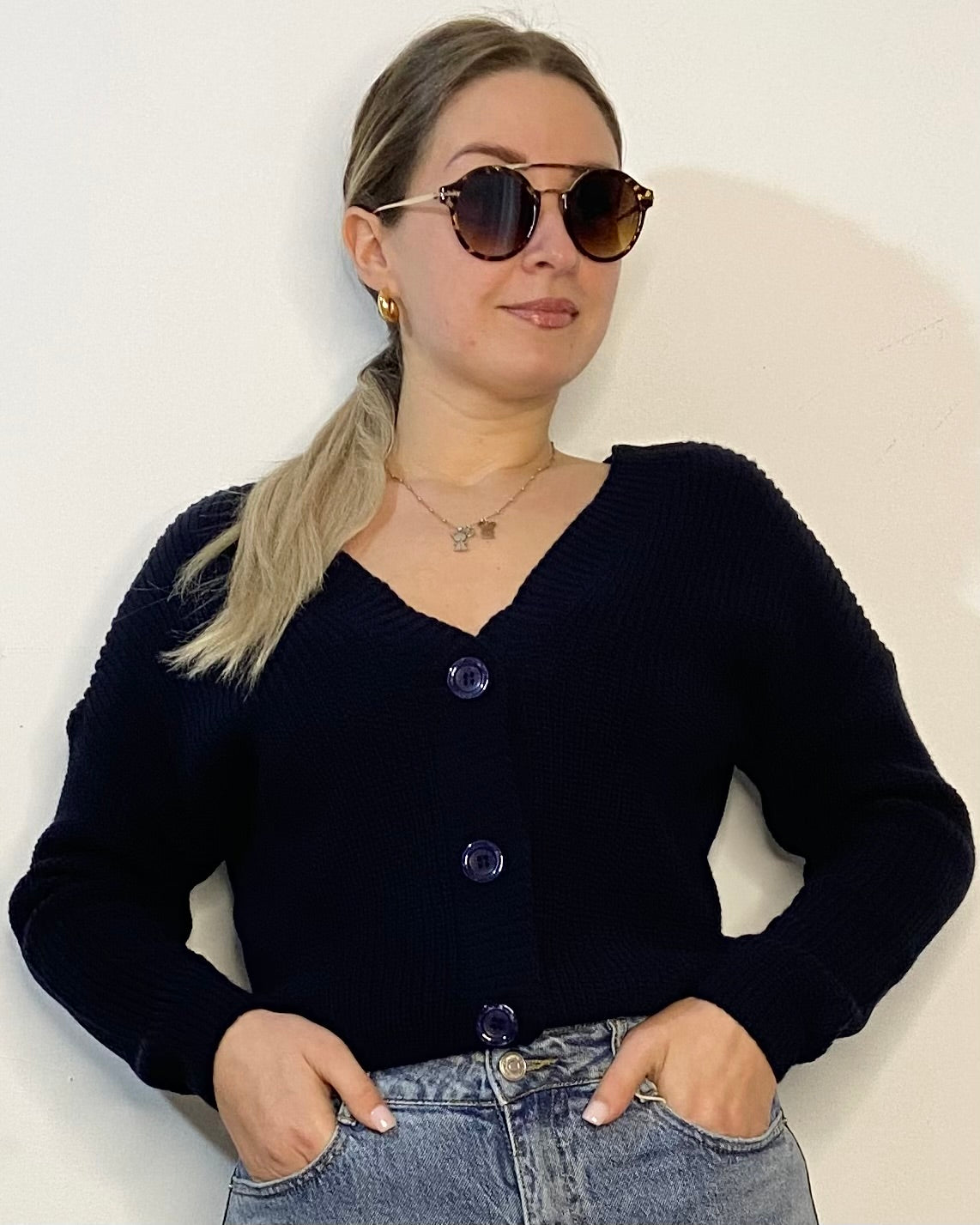 Un mix perfetto tra il comfort della maglia e lo stile grintoso dei dettagli utility. Questo cardigan con chiusura frontale con bottoni a contrasto, scollo a V e finiture elasticizzate sui polsi, si distingue per la sua lavorazione a costine.