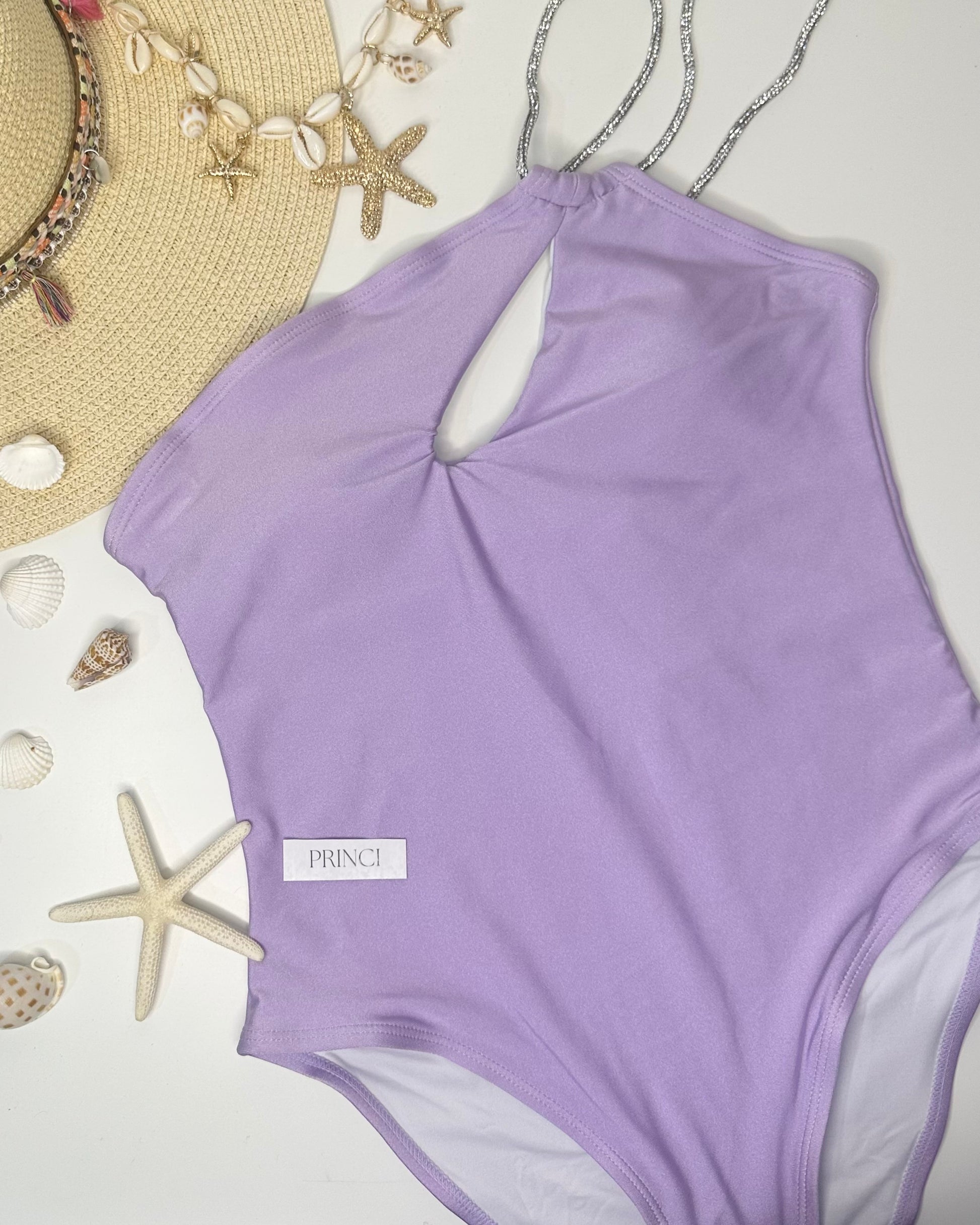 Costume intero con spallina gioiello, coppe preformate, taglio sgambato.