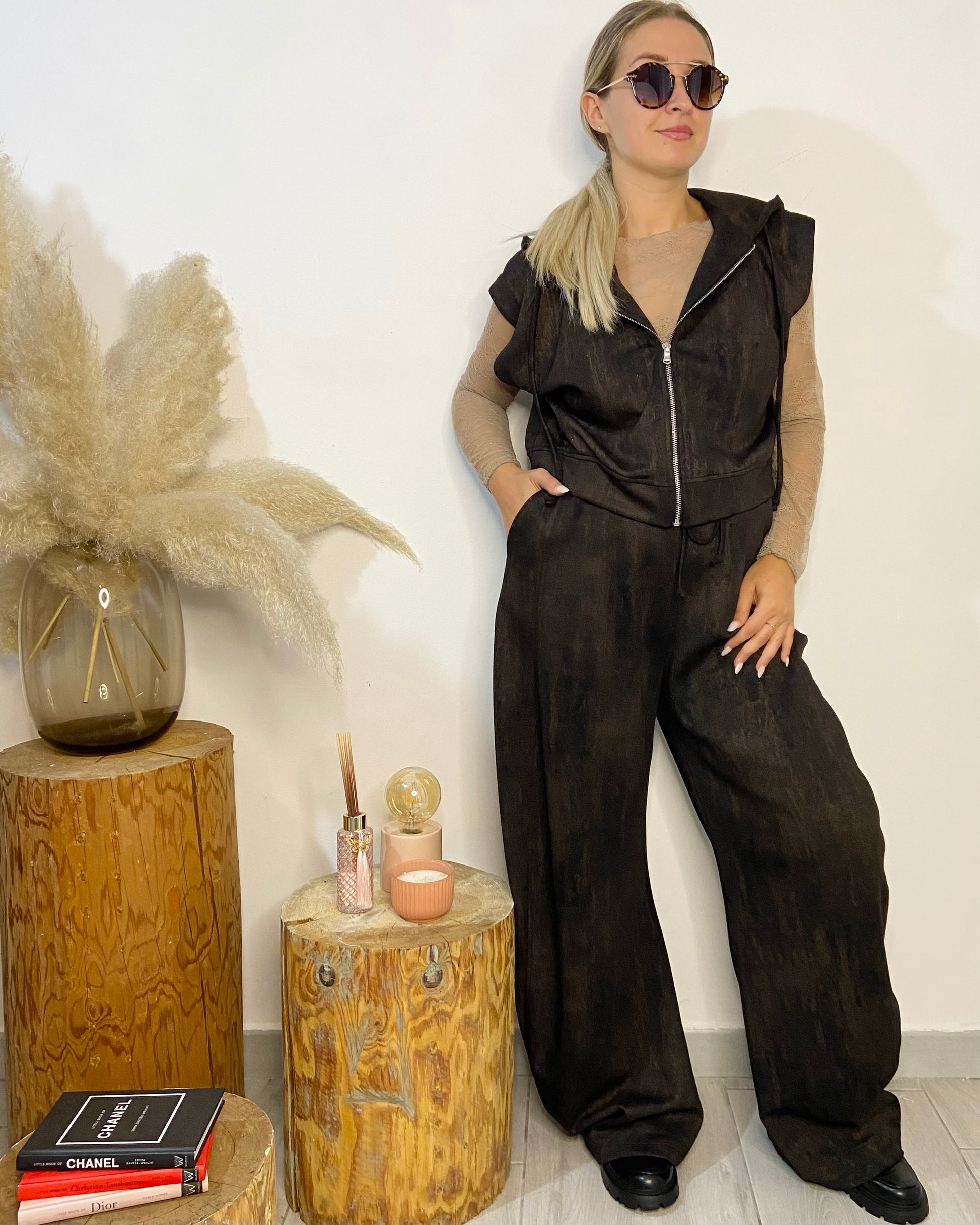 Pantalone modello balloon dal tessuto morbido con elastico in vita e tasche laterali.