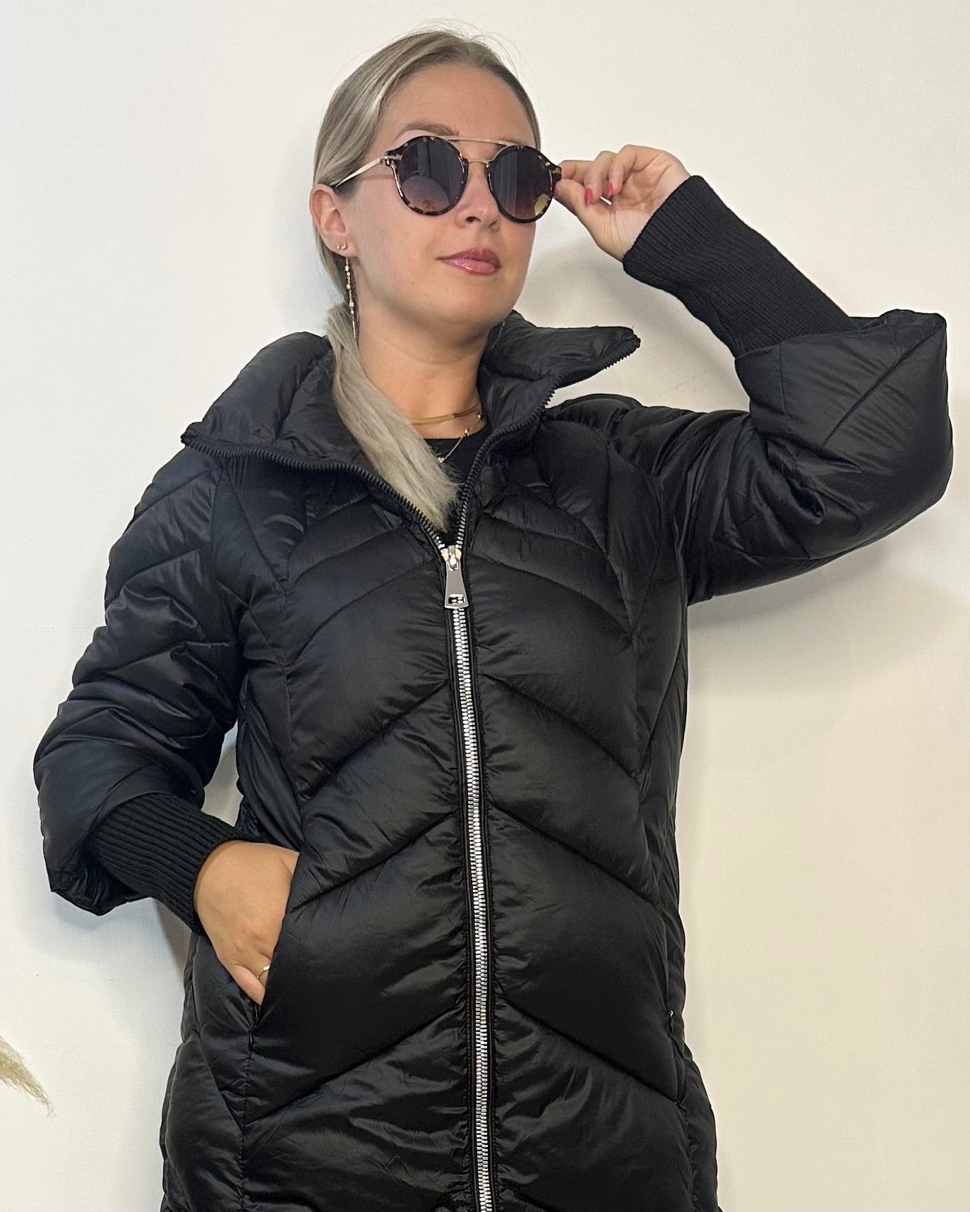 Piumino dalla vestibilitá comoda con manica comoda. La taglia S veste 40/42, la taglia M veste 44, la taglia L veste 46, la taglia XL veste 46/48 e la taglia XXL veste 48/50