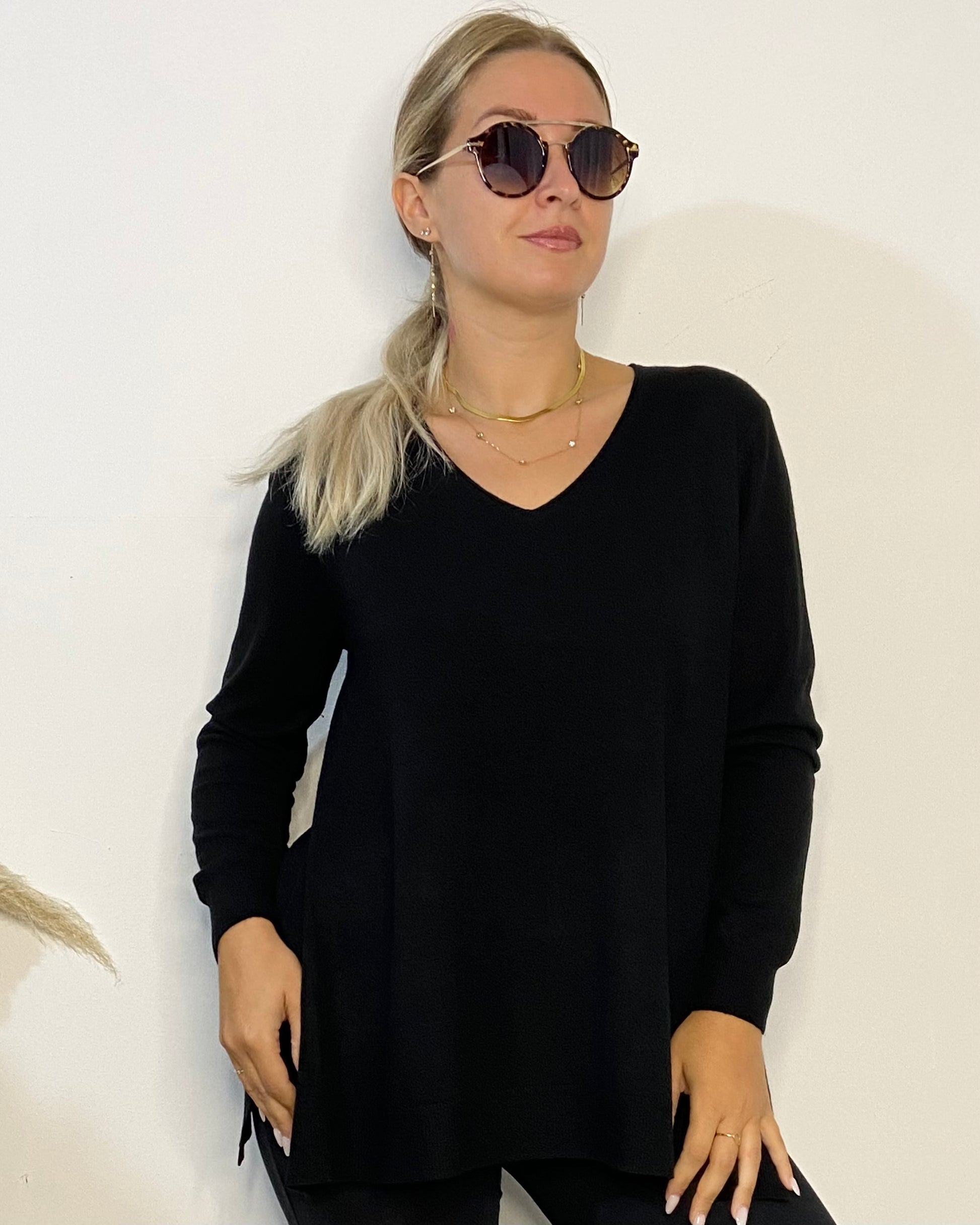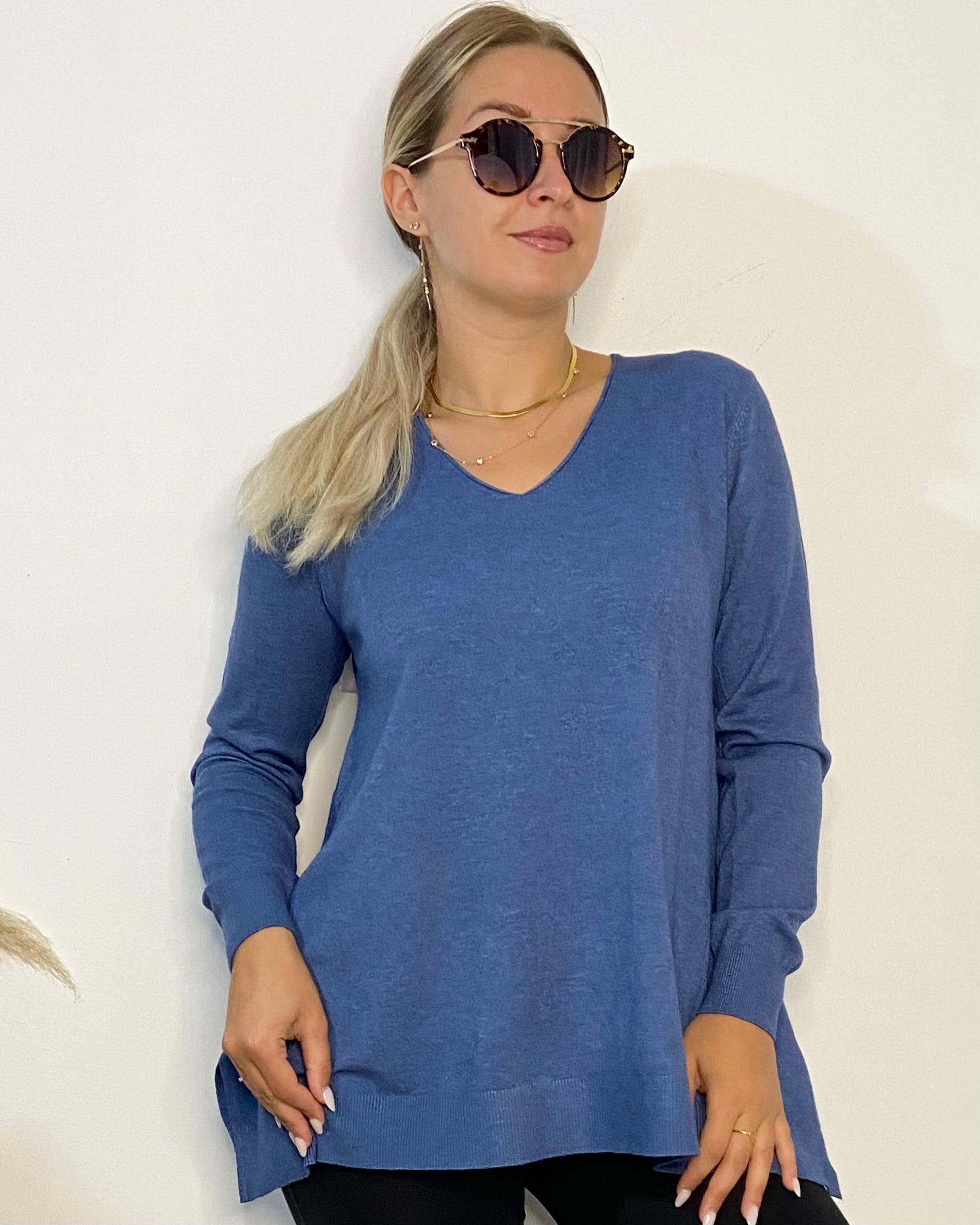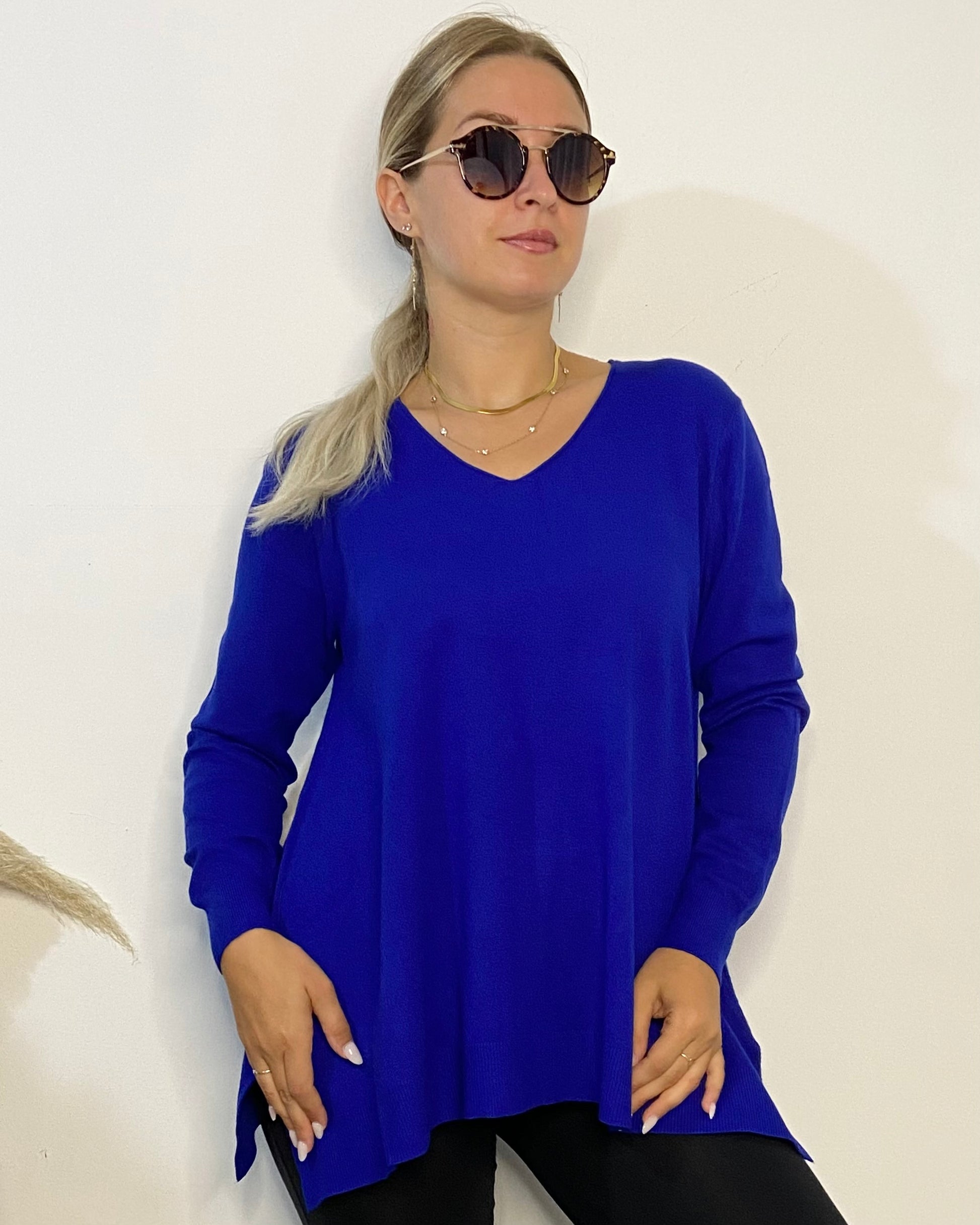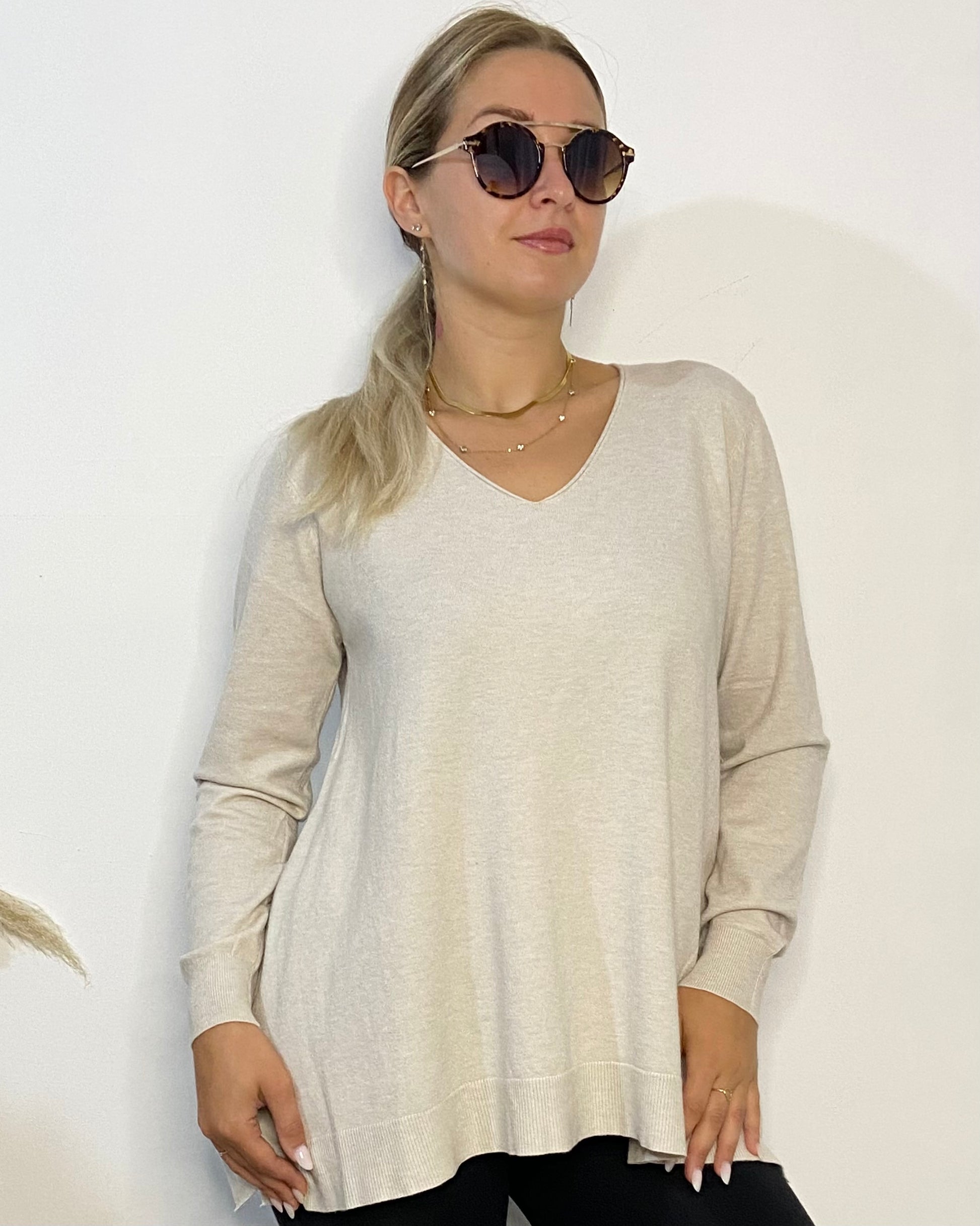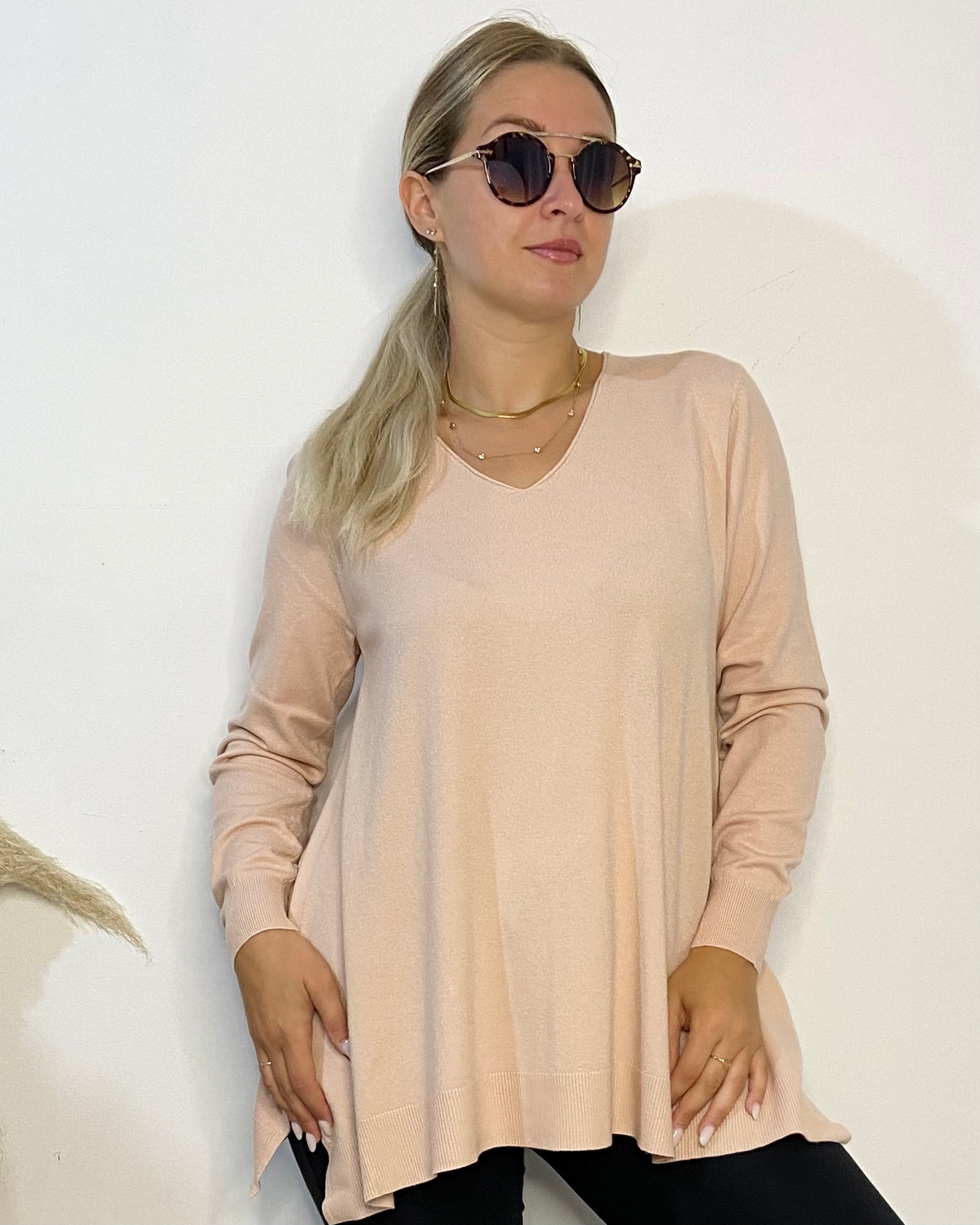 Pullover in taglia comoda con scollatura a V. Taglia unica vestibilità da una taglia 42 ad una 50.
